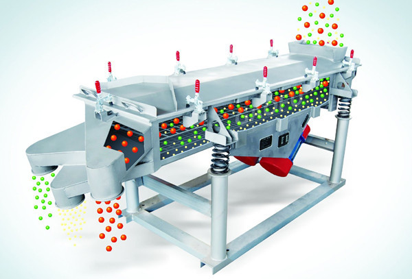直線振動篩利用振動電機(jī)激振作為振動源,使物料在篩網(wǎng)上被拋起,同時向前作直線運(yùn)動,物料從給料機(jī)均勻地進(jìn)入篩分機(jī)的進(jìn)料口,通過多層篩網(wǎng)產(chǎn)生數(shù)種規(guī)格的篩上物、篩下物、分別從各自的出口排出。具有耗能低、產(chǎn)量高、結(jié)構(gòu)簡單、易維修、全封閉結(jié)構(gòu),無粉塵溢散,自動排料,更適合于流水線作業(yè)。
